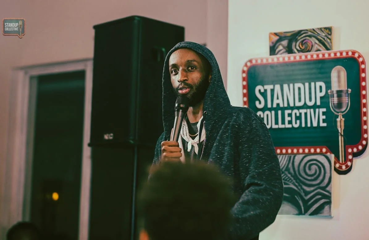Emmanuel began on stage, as a result of watching a Trevor Noah special and simply believing he could also do it. He started getting on stage and practising his skill, despite the idea he had that he might get up and immediately start killing it. This of course did not happen but it humbled him and made him work harder. He managed to make enough progress figuring out how to work a room and tap into the energy created on stage and began work on The Churchill Show for 4 years. This specific style of comedy only resonated with him for so long before he eventually quit to see what else was out there. Emmanuel had a desire to tell stories differently. To engage with audiences in a way more comfortable and natural to him. Slower paced, story based standup comedy appealed to him more. But in the same way Doug could not find room to try practising this, Emmanuel felt alone in his pursuance of the comedy he wanted. So after a trip to South Africa to observe the comedy down there, he came back with a plan. Adjacently but still with the encouragement of Doug, he also began running open mics, for other comics like himself to get into the habit of standup comedy, especially comedy mostly in English.